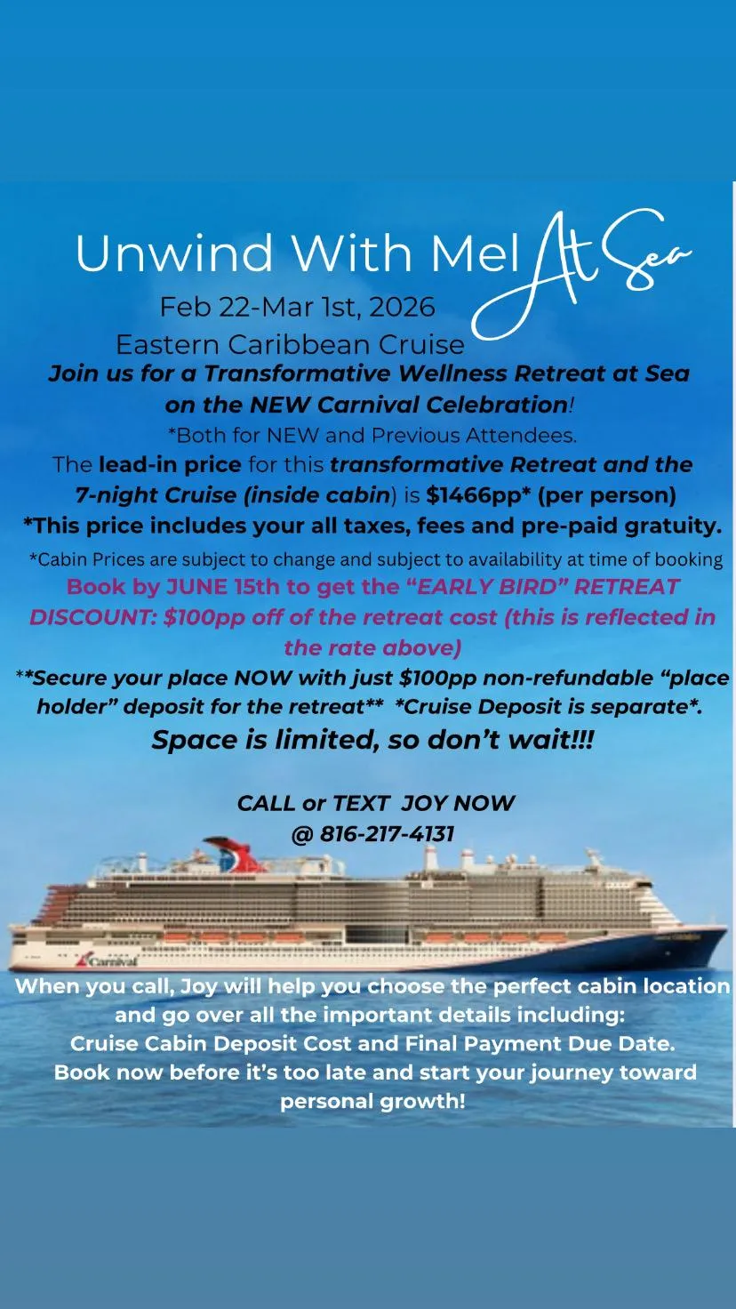 Book directly with our travel agent Joy Neal (816) 217-4131
